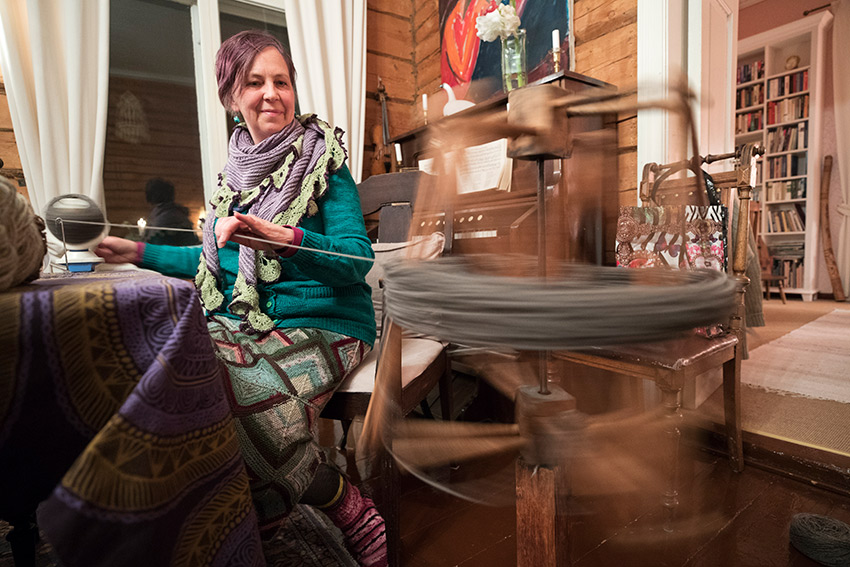 “Röijyä ei tarvitse pestä kuin korkeintaan kerran vuodessa. Se pitää hyvin kosteutta, koska osa langan rasvasta säilyy varovaisessa pesussa. Paras hoitotapa on huolellinen tuuletus. Tahrat pitää poistaa tuoreeltaan. Itse olen käyttänyt myös pesukoneen villapesuohjelmaa ja villapesuainetta.”