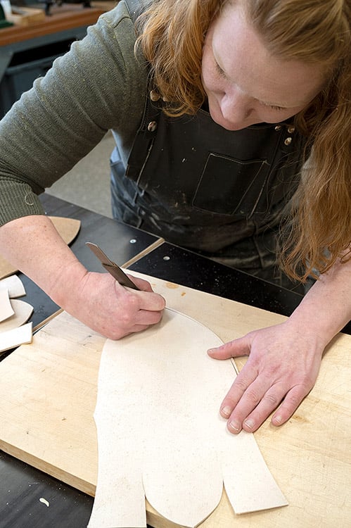 ”Koulussa opin, miten nahka venyy ja mikä osa leikataan mihinkin suuntaan. Mutta pieksuja valmistettaessa tehdään juuri päinvastoin, ajatukset piti kääntää ihan eri perin.”