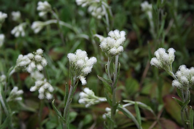 Näyttävimpiä luonnonperennoja ovat kellokasvit. Myös päivänkakkarat, huopaohdakkeet, puna-ailakit ja tähkätädykkeet koreilevat kukillaan. Harjupuutarhassa ja kuvilla paahteisilla rinteillä menestyvä mäkitervakko on komea alkukesän kukkija.