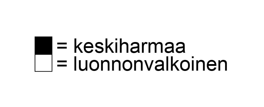 TARVIKKEET: Lankava Villava -lankaa (100 % suomalainen villa, 100 g = 180 m) 40 g luonnonvalkoista (1) ja 40 g keskiharmaata (3). Sukkapuikot 4,5 mm tai käsialan mukaan.