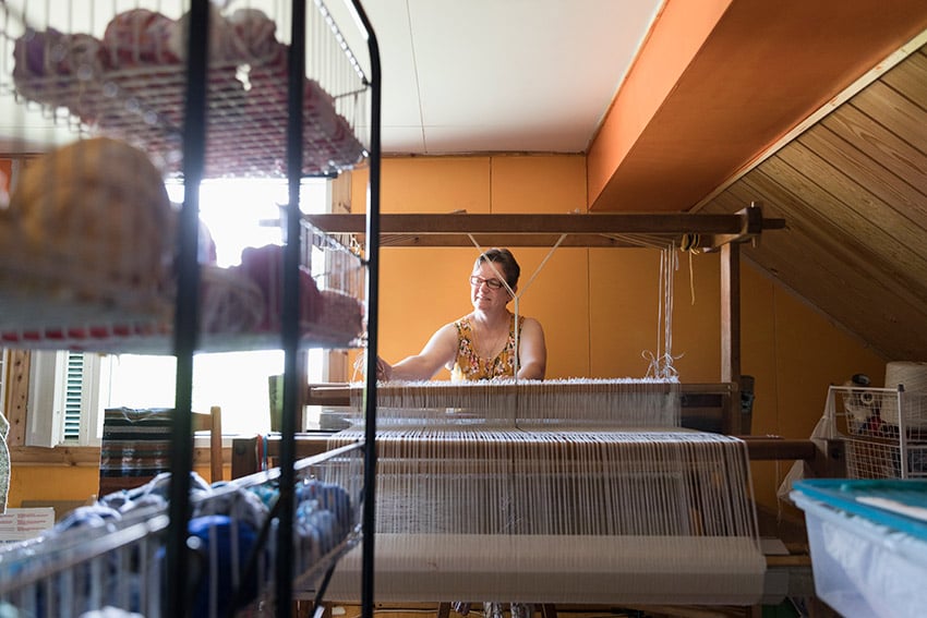 ”Kankaan kutomisessa minulla on varmaan apuna muusikon hyvä rytmitaju. Se oikeasti auttaa siinä, että tulee kauniin tasaista jälkeä.”