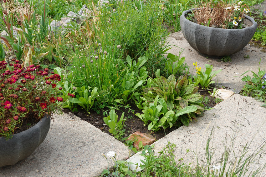Paikat saavat välillä rehottaa villeinä. Rikkaruohot ovat oikeastaan villivihanneksia ja luonnonkasveja, joista ilahtuvat myös pölyttäjät.