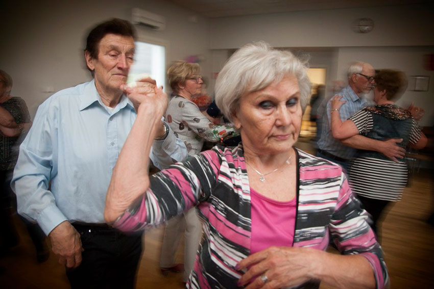 Iäkäs pariskunta purjehtii parketilla kuin teinipari. Ei ihme, takana on vuosikymmeniä kestänyt tanssiharrastus.