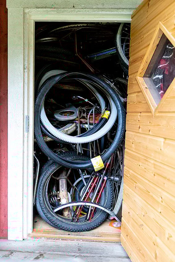 Käyttökelpoisten pyörien lisäksi ulkorakennuksiin on kertynyt rutkasti myös ruosteisia vanteita ja rungon kappaleita. Niitä näyttää olevan niin kertakaikkisen runsaasti, että sisätiloihin ei pysty enempää sullomaan.