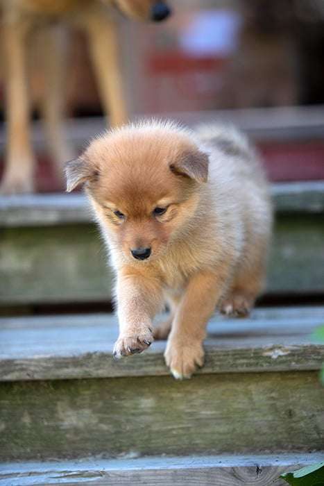 Kolmeviikkoisina pentujen kuulo alkaa olla hyvin kehittynyt. Ne rupeavat tutustumaan ympäristöönsä. Pentulaatikossa painitaan ja toisinaan ulvotaan kuorossa haikeasti. Kekri oli juuri täyttänyt kaksi viikkoa, kun se ponnisti yli pentulaatikon laidan. Se taisi olla vahinko, sillä uutta yritystä ei tullut.